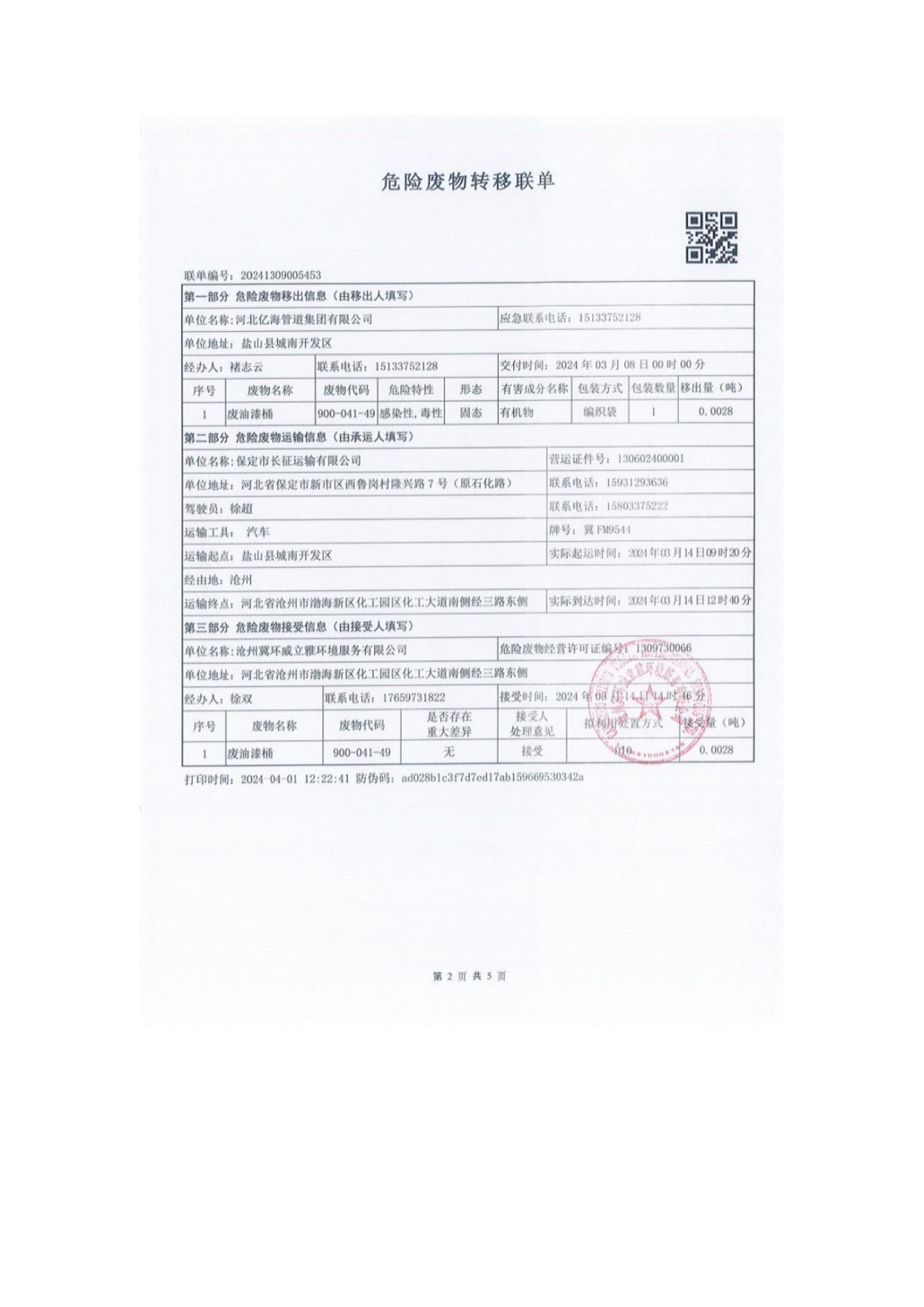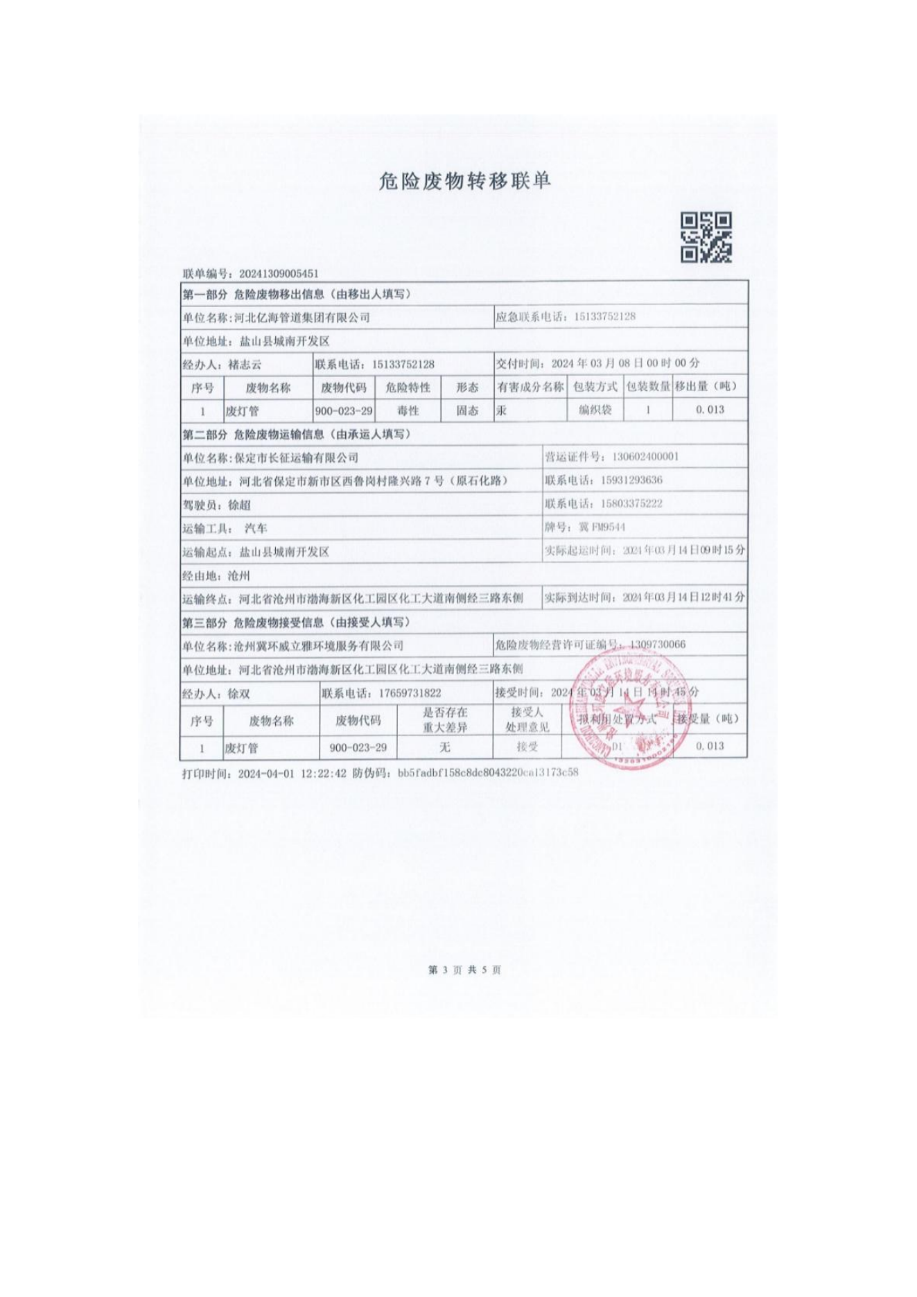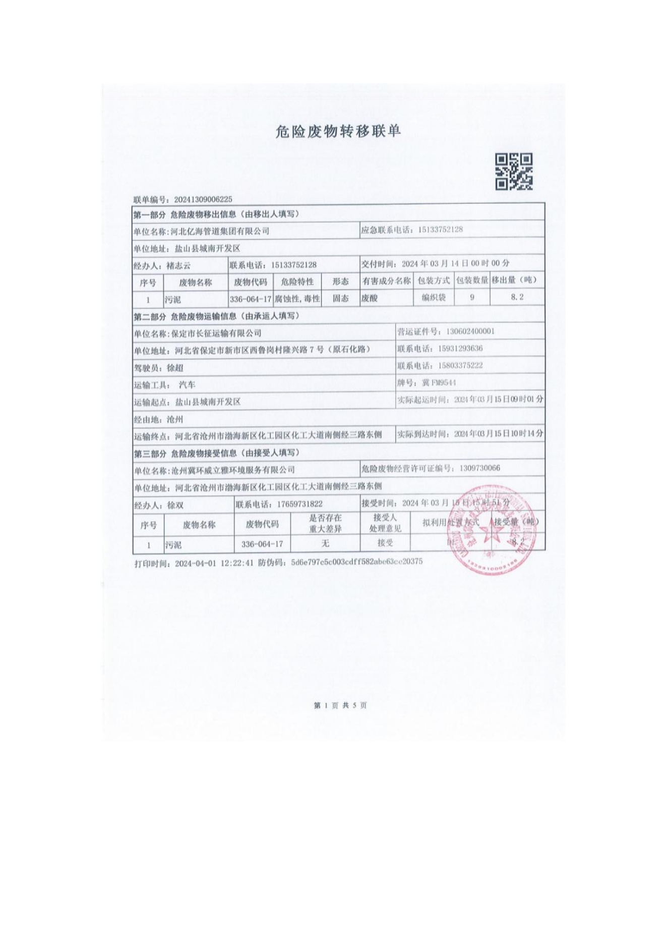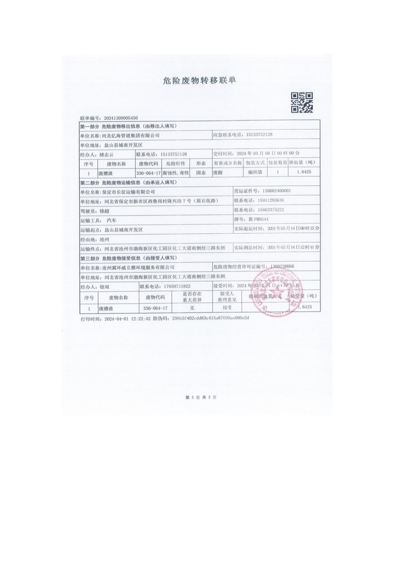 危廢轉移聯(lián)單