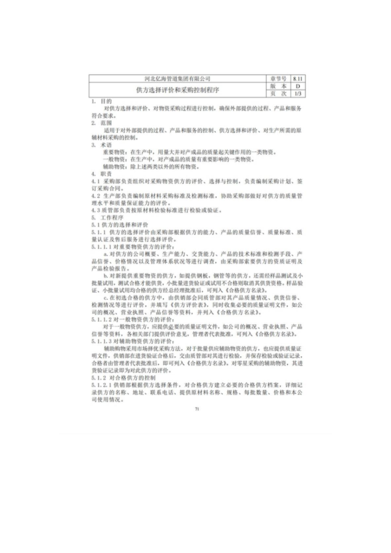 供方選擇評價和采購控制程序